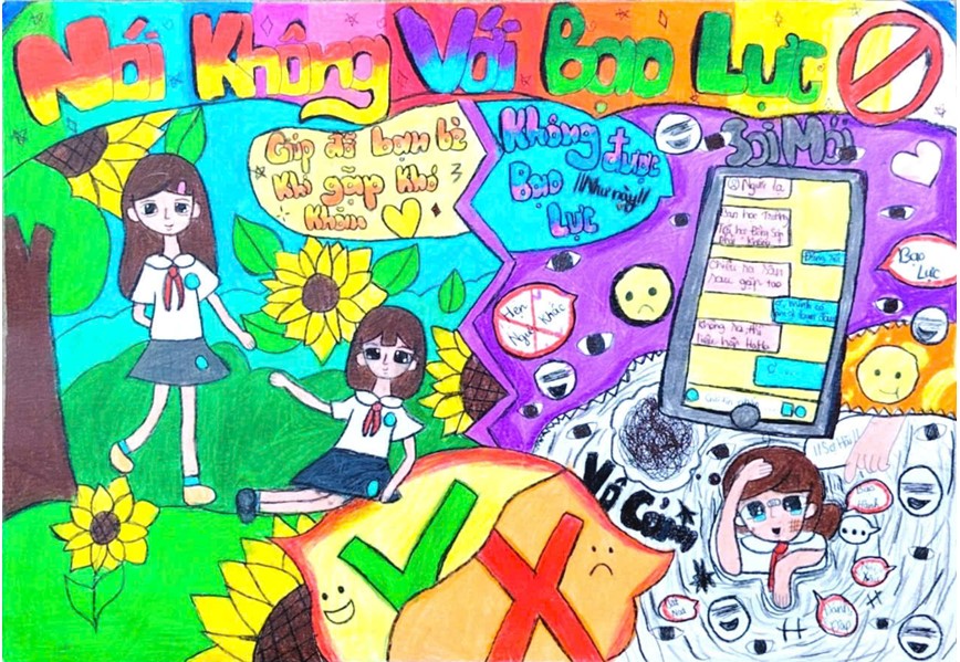 Bức tranh học sinh vẽ chủ đề:” Nói không với bạo lực học đường”